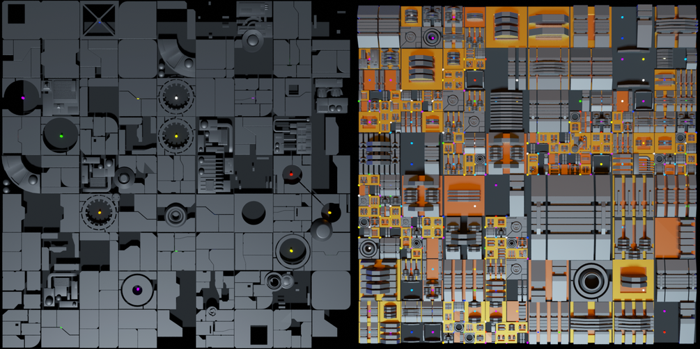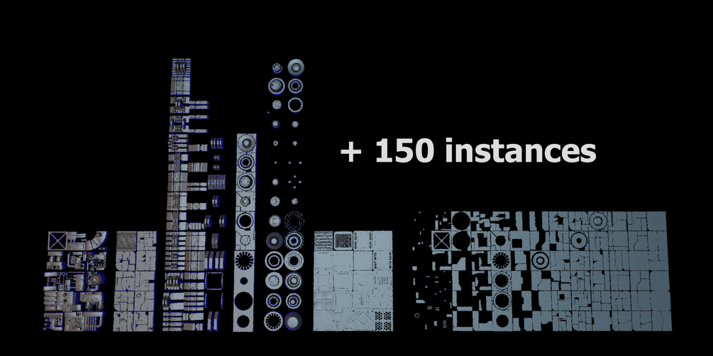 Possibilities for such a node system are vast: Sci-fi, architecture, motion design, abstract design, etc... For instance, You can use it to achieve a Star Wars imperial destroyer look, or an electronic motherboard look by tinkering a bit. As the main nodes all come in modules, they can be set up or even rebuild as will.