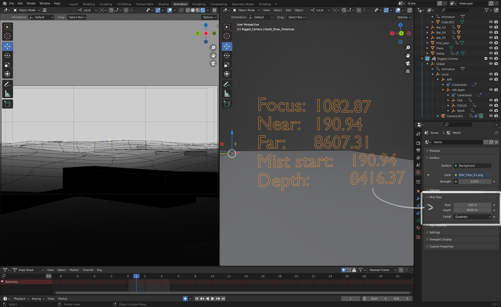 Blender Rigged Camera + Mist calculator